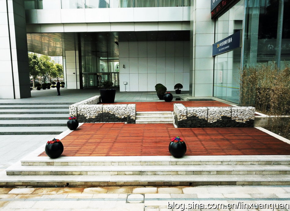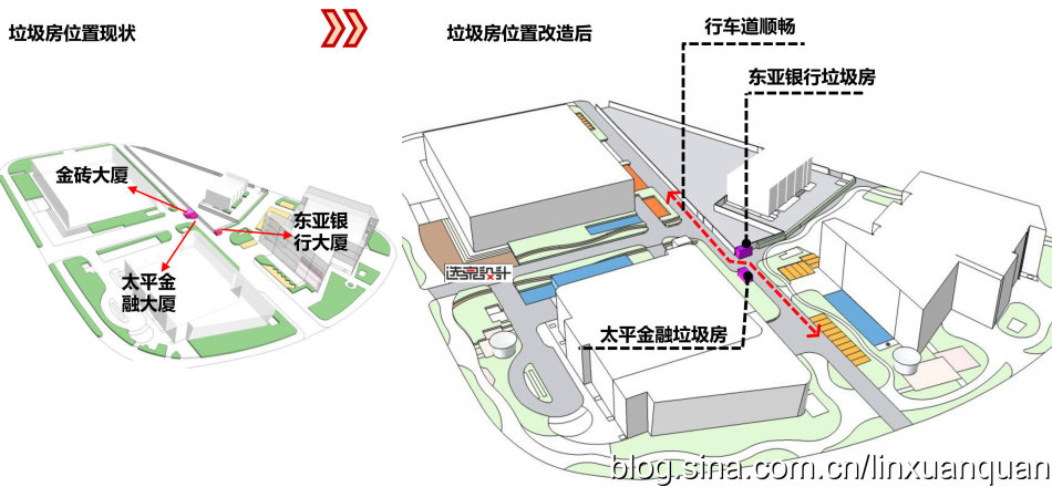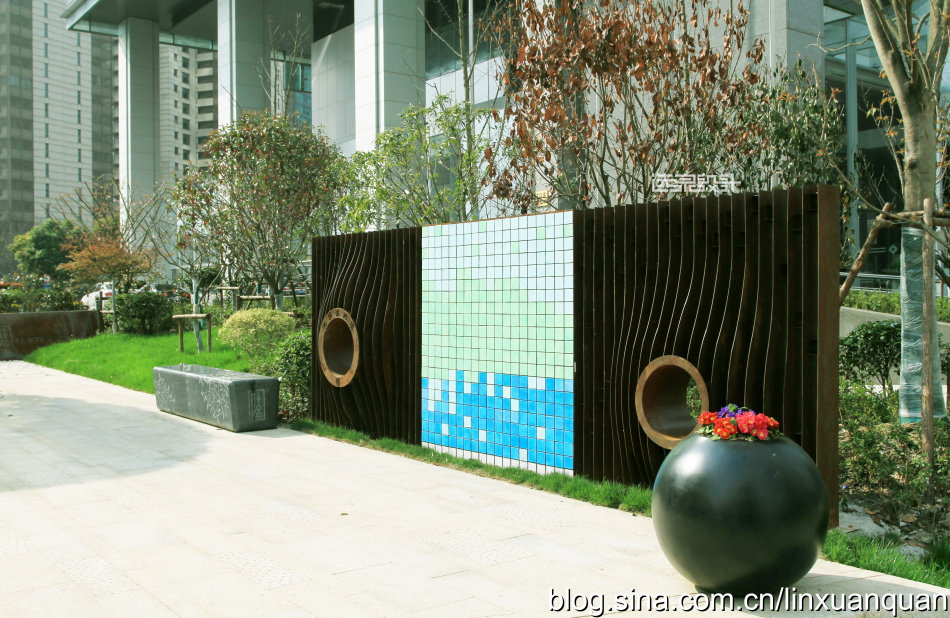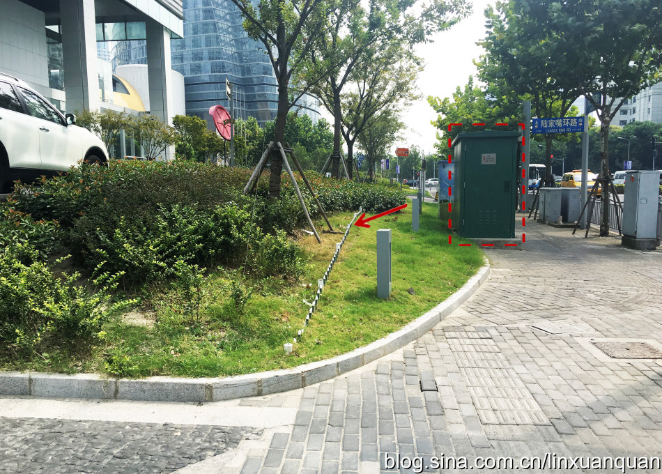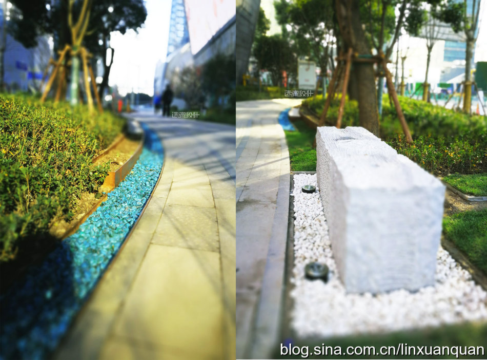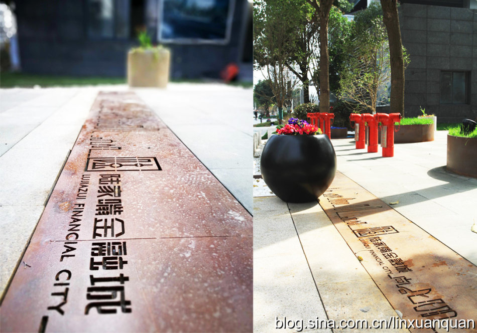 比如金磚大廈一個完整的綠化帶,可以一半是屬于樓宇管理,另外一半是屬于市政部門來管理,在綠地中間設(shè)置一個低矮的欄以示邊界,同時,各種市政公共設(shè)施,如城市的電,水,以及通訊設(shè)施等的一些設(shè)施,也完全無視空間的存在,只放在自己認為合適的地塊。這次在改造中,對于各種城市的各種基礎(chǔ)設(shè)施無序擺放,以及丑陋的外觀,目前只能進行一些遮擋式的修飾,位置還沒有辦法進行統(tǒng)一的規(guī)劃及擺放。