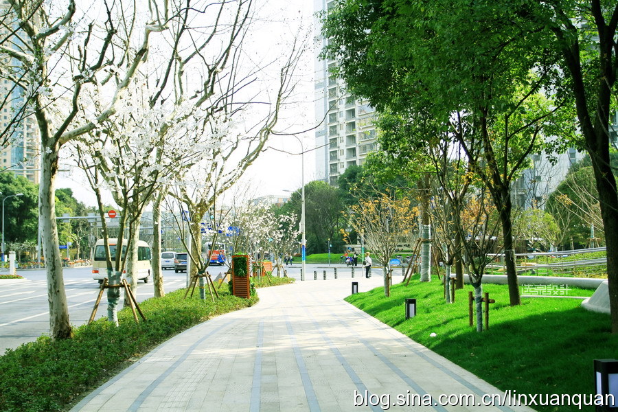 將傳統(tǒng)的直線人行道設(shè)計改為曲直結(jié)合的設(shè)計,即將筆直的市政人行道變成綠化帶里的曲折有致休閑步道。
