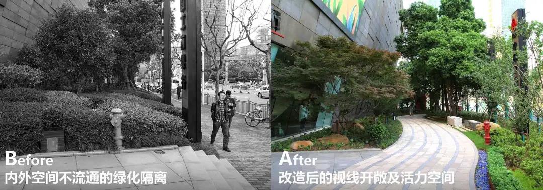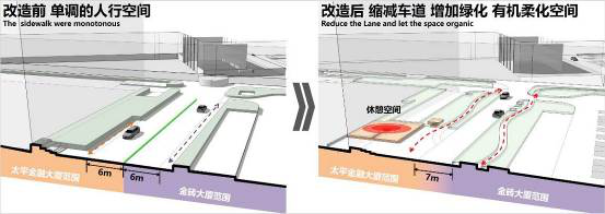 ▼改造前與后的太平金融大廈外人行林蔭道©選泉設(shè)計