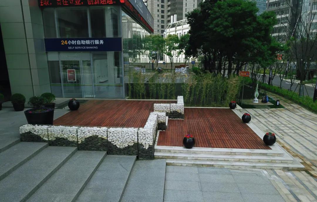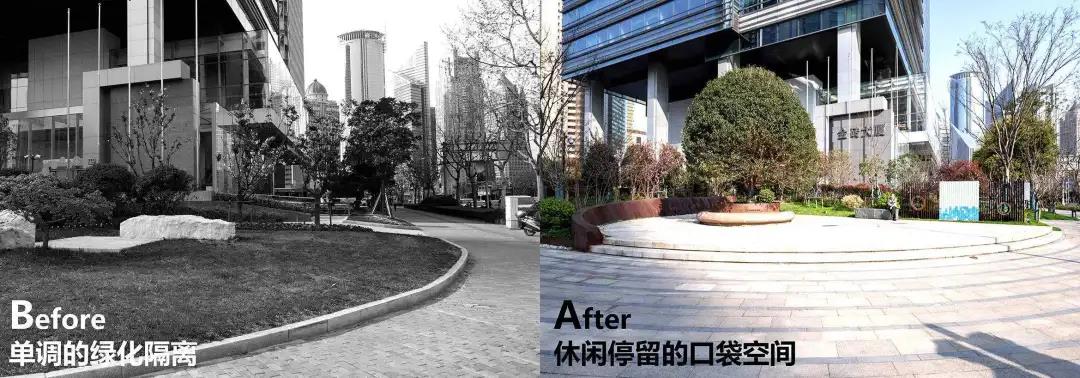 ▼改造后的太平金融大廈口袋公園 砂石花缽©選泉設(shè)計