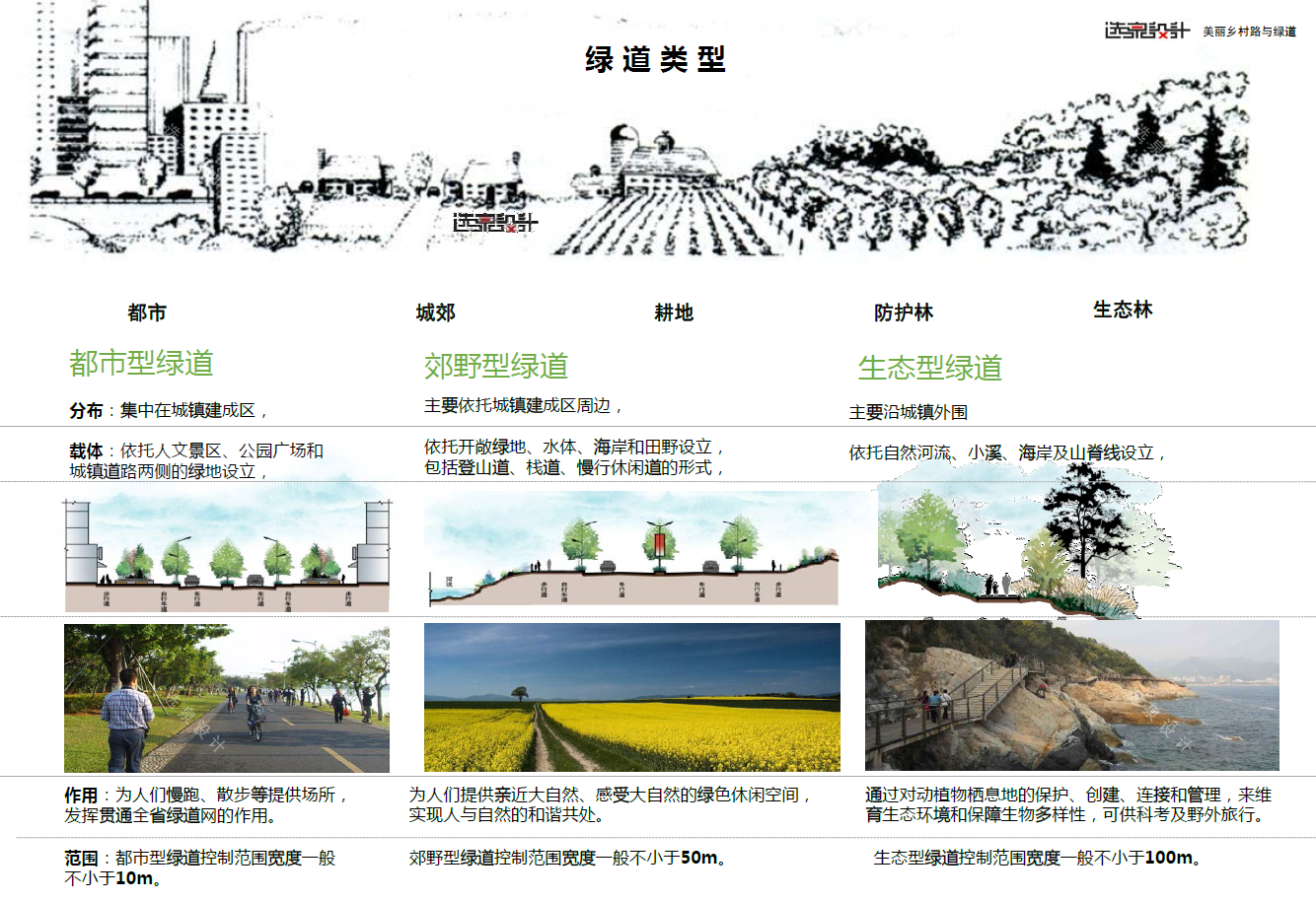 對(duì)區(qū)域性綠道、城鎮(zhèn)型綠道、郊野型