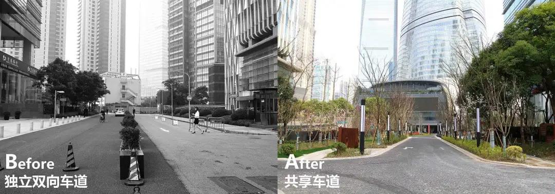 ▼改造后位于太平金融大廈及金磚大廈之間的共享車道©選泉設(shè)計