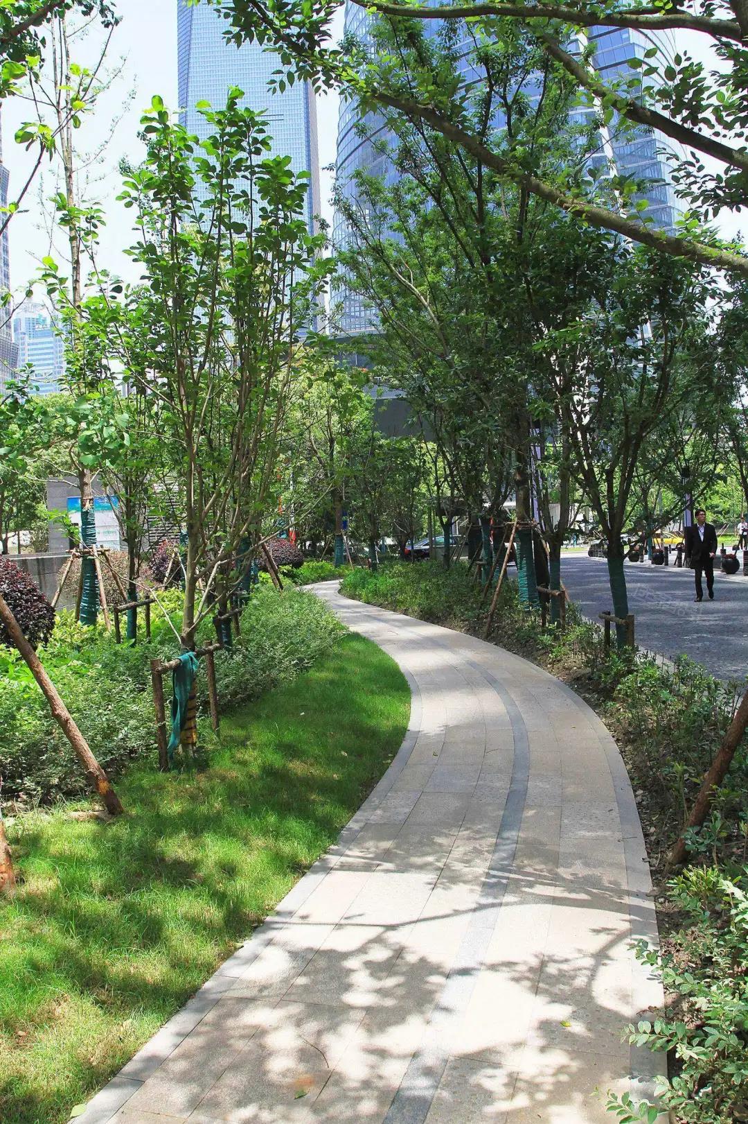 綠地更多的是作為防護綠化,或作為保證城市規(guī)劃綠地指標,以獨立的綠地地塊存在,如陸家嘴中心綠地。
