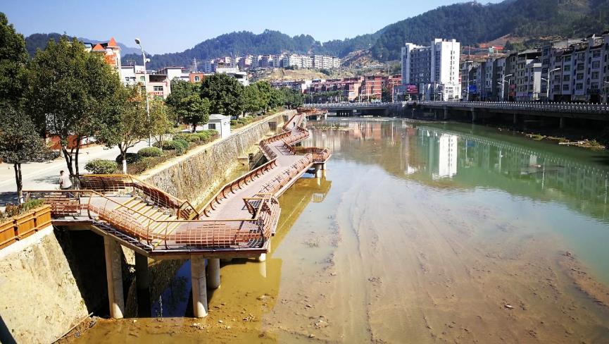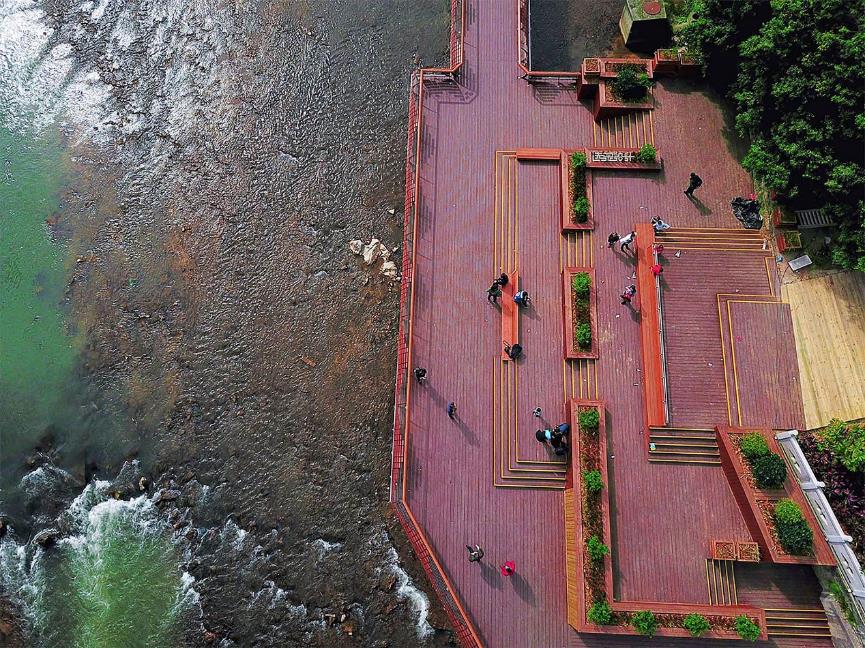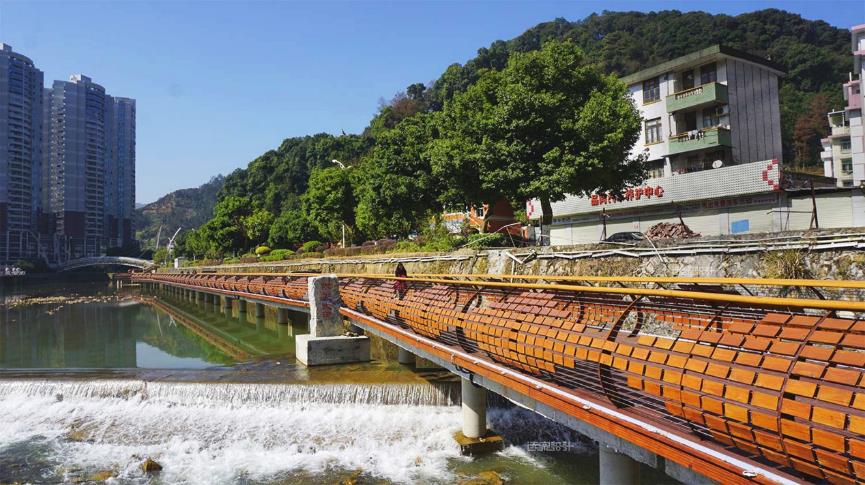 ▼借鑒非物質(zhì)文化遺產(chǎn)“大田板凳龍”設(shè)計形成河濱棧道 攝影 大田河長制