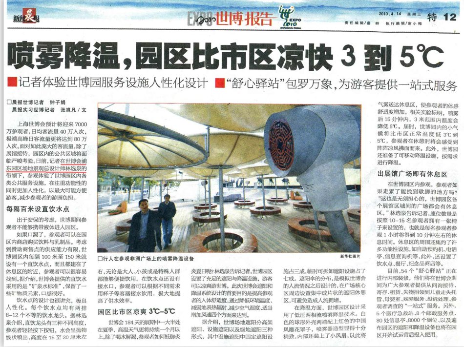 【新聞晨報(bào)20100414】噴霧降溫,園區(qū)比市區(qū)涼快3到5℃