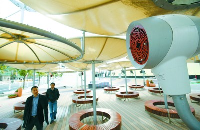 ????上海世博會(huì)預(yù)計(jì)將迎來7000萬參觀者,日均客流量40萬人次,極端高峰日客流量更將達(dá)到80萬人次。面對(duì)如此龐大的客流量,除了展館接待,園區(qū)內(nèi)的公共區(qū)域?qū)⒚媾R嚴(yán)峻考驗(yàn)。日前,記者在世博會(huì)浦東園區(qū)場(chǎng)地景觀總設(shè)計(jì)師林選泉的帶領(lǐng)下,參觀體驗(yàn)了世博園區(qū)內(nèi)各類公共服務(wù)設(shè)施,在注重功能性的同時(shí)更加人性化,以最大可能方便游客,減少參觀者的游園負(fù)擔(dān)。