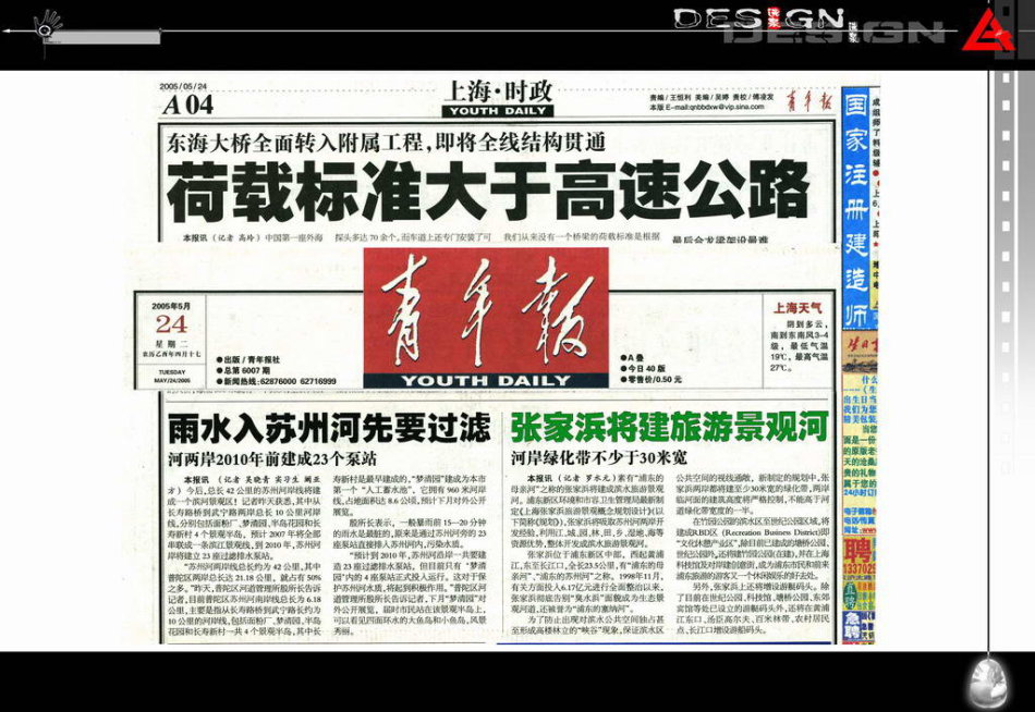 【青年報(bào)報(bào)2005-05-24】張家浜將建旅游景觀河 綠化帶不少于30米寬