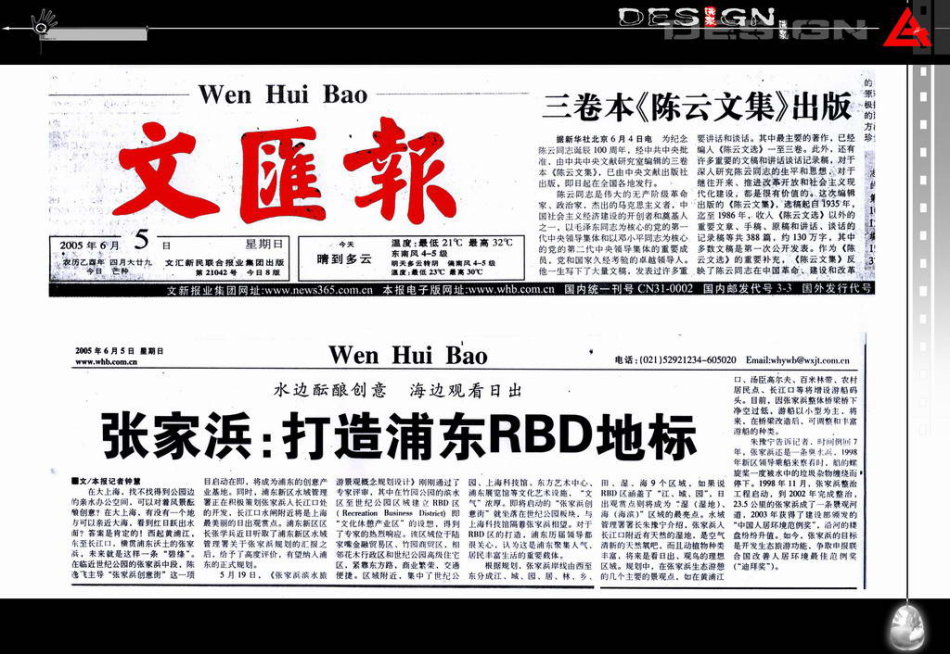 【文匯報(bào)2005-6-5】水邊釀創(chuàng)意 張家浜打造浦東RBD地標(biāo)