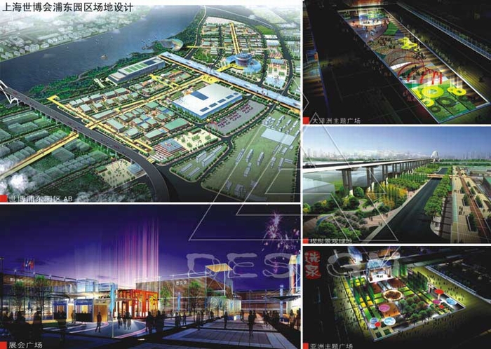 林選泉:世博會場地設(shè)計,它是一項綜合性的設(shè)計研究工作,包括浦東園區(qū)(注:圍欄區(qū)2.39平方公里)內(nèi)的廣場體系、綠地體系、高架體系、服務(wù)設(shè)施體系等外部公共空間,是世博會最終落地實施的關(guān)鍵性環(huán)節(jié)。場地設(shè)計既要協(xié)調(diào)、融合、落實二十幾個相關(guān)世博園區(qū)的規(guī)劃設(shè)計專項,又要演繹好“城市,讓生活更美好”理念。如何解題?最終,我們在中國具有傳統(tǒng)城市特色的 “街坊”中找到詮釋。我理解,上海世博會只是一個特殊城市事件,其目的不僅僅是一個世界博覽會,而是啟動一場世博經(jīng)濟,重建一片新城,加快城市化進程。我們希望通過場地設(shè)計,讓展館建筑圍合形成具有傳統(tǒng)“街區(qū)”結(jié)構(gòu)的格局。世博會后盡管大多展館被拆除了,但空間肌理被保留了下來,在這個基礎(chǔ)上重新構(gòu)筑世博場地,讓它回歸城市生活:充滿自然氣息的街區(qū)景觀、充滿綠色理念的街區(qū)交通、充滿生活氣息的街區(qū)生活………