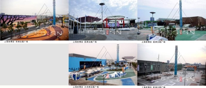 寧中意:在世博場(chǎng)地林選泉BC片區(qū),各個(gè)國家館根據(jù)地理位置分布,每個(gè)洲都有自己的主題廣場(chǎng),這幾大廣場(chǎng)通過哪些設(shè)計(jì)語匯來體現(xiàn)各自特色的呢?