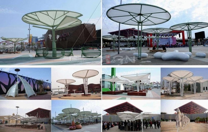 林選泉:世博公共空間將容納巨大人流,遮陽避雨設(shè)施需求量大;場(chǎng)地空間復(fù)雜、配套設(shè)施多且邊界條件不斷變化,因此,需要統(tǒng)籌系統(tǒng)布局遮陽設(shè)施;在滿足遮陽基本功能的前提下實(shí)現(xiàn)技術(shù)與藝術(shù)的融合。