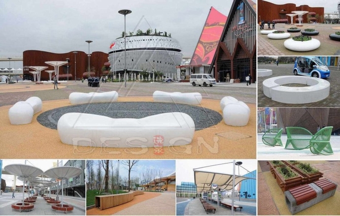 寧中意:世博期間,面對(duì)巨大的參觀人流,肯定要考慮游人的休憩,因此座椅的設(shè)置是免不了的。這些座椅是如何來配置的,又有哪些形式呢?