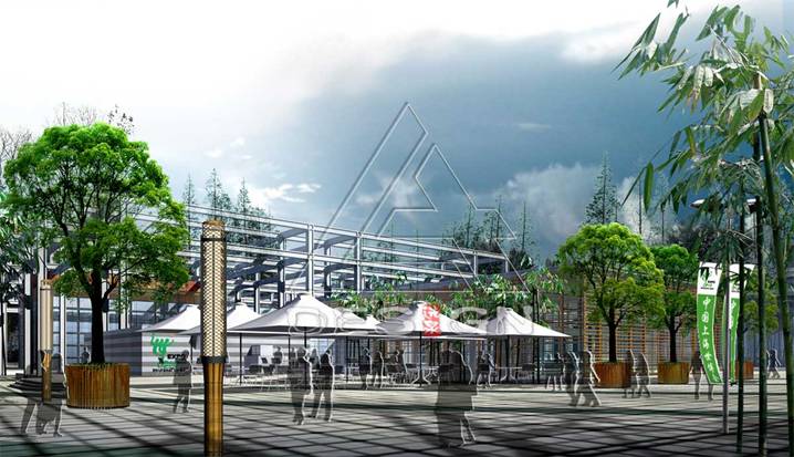 整體環(huán)境景觀上運(yùn)用道家“太極”的形和神,讓植物等軟質(zhì)景觀包容廣場(chǎng)、展會(huì)建筑、高架步道、市政設(shè)施等硬質(zhì)景觀,彼此間相互協(xié)調(diào),形成“和諧共生”的統(tǒng)一體。根據(jù)世博園的空間結(jié)構(gòu)及生態(tài)肌理,構(gòu)思利用可移動(dòng)綠化等設(shè)施組成“綠廊”,起到了“隔、融、透、廊、屏”的作用,簡(jiǎn)潔有序地組織交通并軟化空間環(huán)境,最終形成“有機(jī)組團(tuán)整體”。 “綠廊”,實(shí)現(xiàn)了極具東方特色的空間體驗(yàn)。