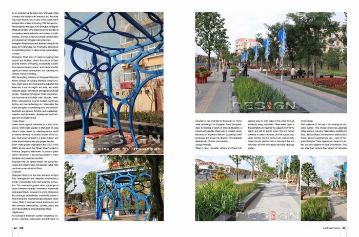 Shangnan Road is at the main entrance to Expo Axis. Management and utilization of rainwater is artfully incorporated into road greening renovation. The stormwater garden takes advantage of urban rainwater naturally, transforms wastewater discharged directly to sewers to a kind of resource that recharges groundwater, meanwhile creates a kind of attractive street landscape and green urban space. Finally it improves natural environment and well connects communities, schools, parks and commercial districts along
