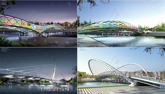 先確定張家浜橋梁景觀設計總體理念以及各區(qū)段的橋梁風格:突出西段橋梁的現(xiàn)代文化氣息,中西段的自然純樸氣息,然后在工程和景觀統(tǒng)一的前提下,優(yōu)選橋型,設計對應的橋梁主體和橋梁附屬景觀設計系統(tǒng),最后進行張家浜橋梁色彩和橋梁夜景專項設計,同時對橋梁群建立完善的管理、維護、宣傳、運營等制度。