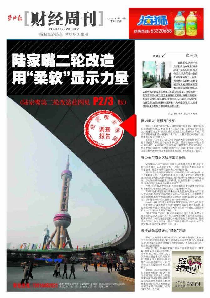 這八大功能將被分為21個(gè)項(xiàng)目載體,通過(guò)2011-2013年三年時(shí)間,完成對(duì)小陸家嘴地區(qū)的改造?!案脑焱瓿珊?,在公共空間上,小陸家嘴能成為和紐約、倫敦、東京等相媲美、具有個(gè)性特色的金融城?!绷诌x泉說(shuō)。