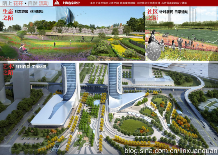 結(jié)合城市發(fā)展與周邊場(chǎng)地的分析,根據(jù)服務(wù)人群的不同,將地塊分成三個(gè)不同功能的板塊。服務(wù)于白領(lǐng)的藝術(shù)之陌,服務(wù)于居民的社區(qū)之陌,服務(wù)于游客的生態(tài)之陌。