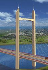 作為斜拉橋主體構(gòu)件要素而在力學(xué)上起著重要作用的主塔,其高聳挺拔的風(fēng)姿引人注目,起著象征和標(biāo)志作用,是景觀中最重要的因素之一,因此,對橋梁主塔應(yīng)在結(jié)構(gòu)設(shè)計(jì)的基礎(chǔ)上,按照橋梁景觀設(shè)計(jì)的原則作造型及外裝的完善,使橋塔在蘊(yùn)藏著自身力量感、緊張感同時(shí),又孕育著向高空伸展,刺破青天的動勢,誘發(fā)參觀者升入更高境界,由“情境”層面進(jìn)入“意境”層面,從而使橋塔具有高揚(yáng)功能與動態(tài)美。