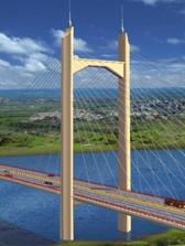 斜拉橋其剛度大、空氣動力性能好,且簡捷流暢、連續(xù)舒展、輕巧纖細(xì)、、向上動勢感強(qiáng),體現(xiàn)橋梁的現(xiàn)代美。它與懸索橋同屬懸吊式結(jié)構(gòu),在景觀特征上有共同之處,與其他橋型相比,都增加了塔和索的構(gòu)造,在空間構(gòu)圖上對單維突出的水平大梁起到了協(xié)調(diào)比例的作用。斜拉橋橋型景觀主要是以豎直線的橋塔、斜直線的拉索、拱曲線的主梁等為主基調(diào),斜拉橋的橋體景觀印象中,是以剛性的美為審美主格調(diào)。斜拉橋的橋塔、主梁、拉索、橋墩等橋梁主體結(jié)構(gòu)構(gòu)件的景觀設(shè)計(jì)是橋梁(總體)景觀設(shè)計(jì)的重要組成部分,影響著橋梁整體風(fēng)格和形象。