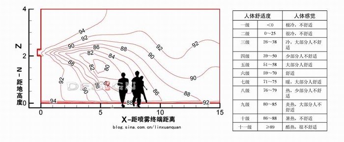 ??? 降低空氣溫度是最直接有效的改善人們體感舒適度的方式,在夏季的世博場地,若能使局部空間的環(huán)境溫度降低3-5度,可以極大改善參觀游客的體感舒適度。