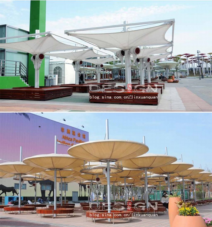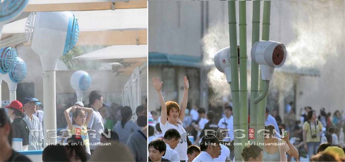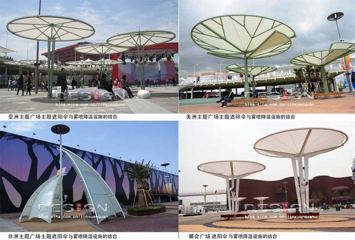 圖7:懸掛式噴霧終端和世博主題遮陽傘結(jié)合